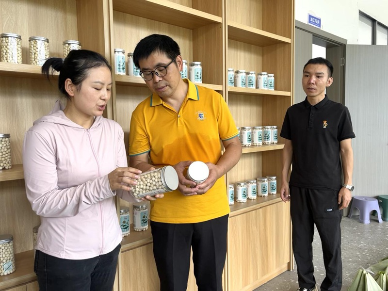技术人员实地了解莲子、荷叶茶等深加工产品的生产情况